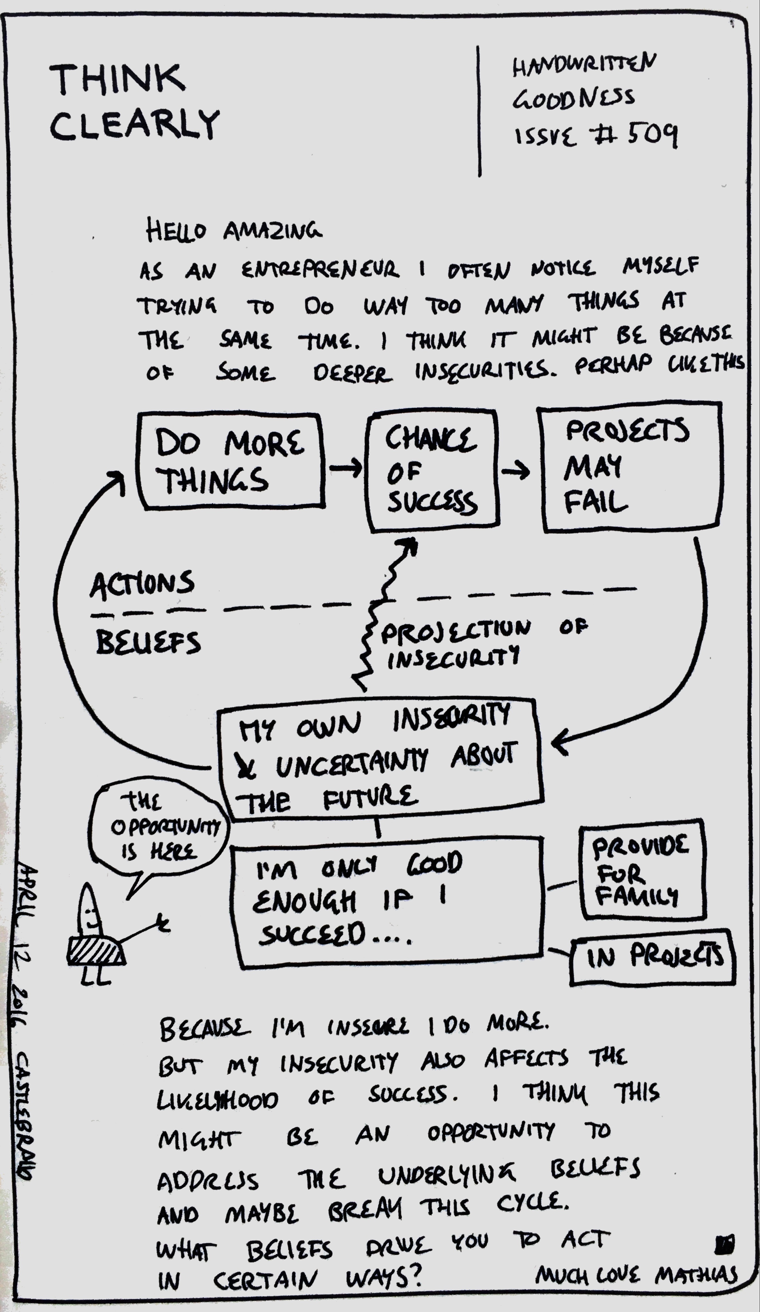 Think Clearly newsletter Photo of a Think Clearly handwritten newsletter created by Mathias Jakobsen Post author By mathias Post date April 12, 2016 No Comments on Think Clearly newsletter Leave a Reply Cancel replyYour email address will not be published. Required fields are marked *Comment * Name * Email * Website Δ This site uses Akismet to reduce spam. Learn how your comment data is processed.